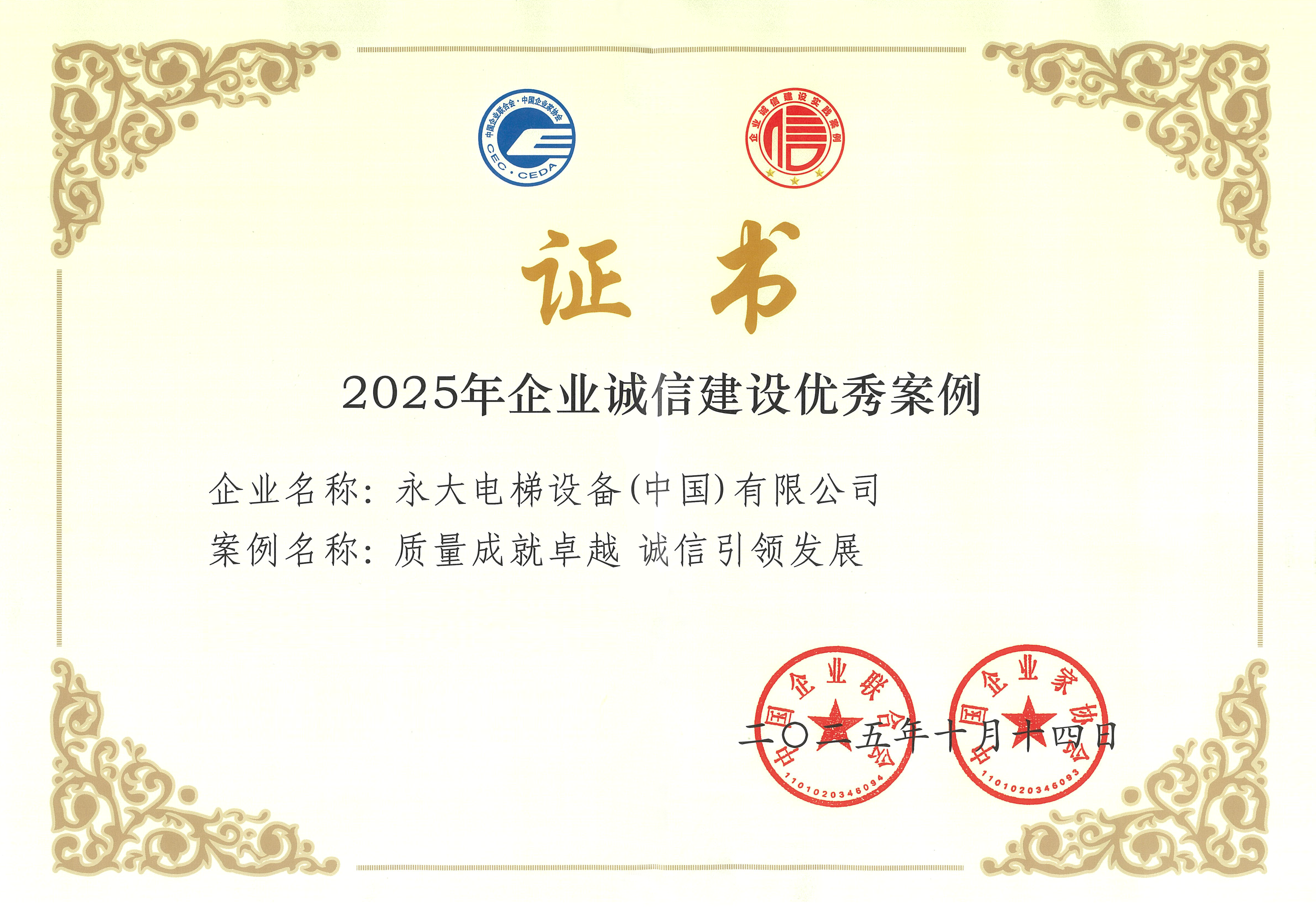 此次榮獲“2025年企業(yè)誠信建設優(yōu)秀案例”,是對永大電梯誠信建設成果的肯定。永大將進(jìn)一步踐行誠信精神,弘揚誠信文化,切實(shí)履行企業(yè)社會(huì )責任,助力構建更加誠信、和諧的行業(yè)氛圍與社會(huì )環(huán)境。